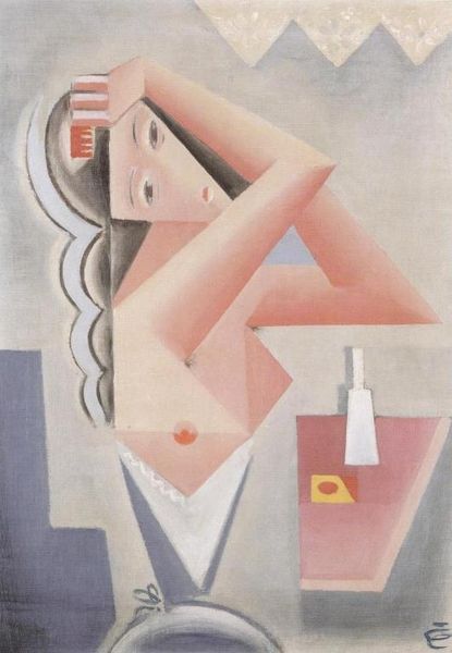 René Magritte made this oil painting called Bather, and it’s a pretty cool construction. What strikes me first is the colour palette: muted tones that give the scene an air of quiet contemplation. It feels like a dream, right? Now, let's talk about the paint itself. It's so smooth, almost like glass. Magritte’s brushstrokes are so subtle, you can hardly see them. He really hides the process, which is interesting. Look at the woman's skin – those soft gradations of pink and white. It's not about capturing reality, but more about creating a feeling, a mood. And then there’s that peculiar white orb on the cube – what’s that about? Magritte reminds me a bit of de Chirico, another surrealist who was into strange, dreamlike scenes. But Magritte’s got this way of making the ordinary feel totally bizarre. He invites us to question everything we see.