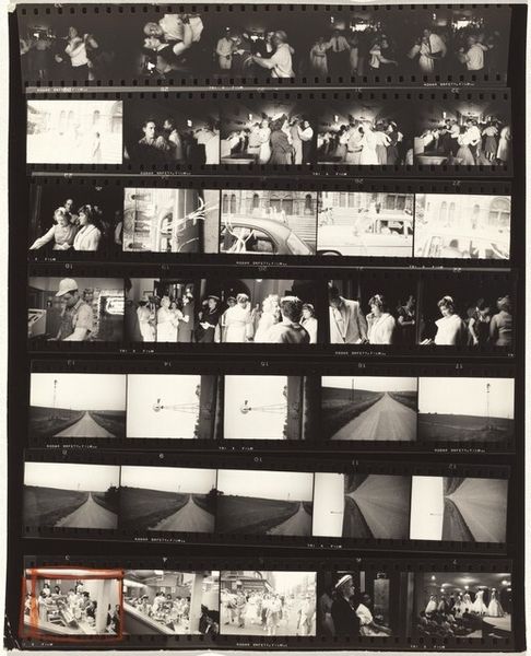 Robert Frank made this gelatin silver print, "Rose Bowl Parade--Pasadena, California," using a relatively accessible process of the time. Gelatin silver printing was a widely used photographic process involving light-sensitive silver salts and gelatin. This photographic process allowed Frank to capture a moment in time at the Rose Bowl Parade. The image is cropped at an odd angle, highlighting the spectators rather than the spectacle. The material qualities of gelatin silver prints—the tonal range from deep blacks to bright whites, and the smooth surface—enabled Frank to produce an image with sharp contrasts. Frank's use of this process allowed for mass production and distribution of his work. His focus on everyday scenes, like this crowd at a parade, democratized photography, breaking away from the staged and formal portraits traditionally associated with the medium, and connecting it to wider social issues of documentation. The choice of subject challenges distinctions between art and everyday life, making photography more about the captured moment and less about technical perfection.