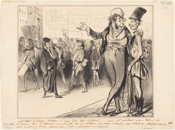This lithograph was made by Honoré Daumier, likely in the 1830s. It's a print, and it’s all about the process of image-making, and its relationship to capitalism. Daumier was a master of lithography, a technique that democratized image production in the 19th century. Lithography involves drawing with a greasy crayon on a stone, treating it with chemicals, and then printing multiple copies. In this image, we see two figures, Robert Macaire and Bertrand, engaged in a shady discussion. The lines are loose and flowing, capturing the characters' slyness. Look closely, and you can almost feel the greasy crayon sliding across the lithographic stone. Daumier used lithography to make social commentary. He was interested in the way that people were being exploited by the powerful, and the role that money played in society. The artist used the print medium to critique power, laying bare the mechanics of political corruption and social inequality. The very process by which the image was made mirrors the themes of mass production and consumption that he critiques.