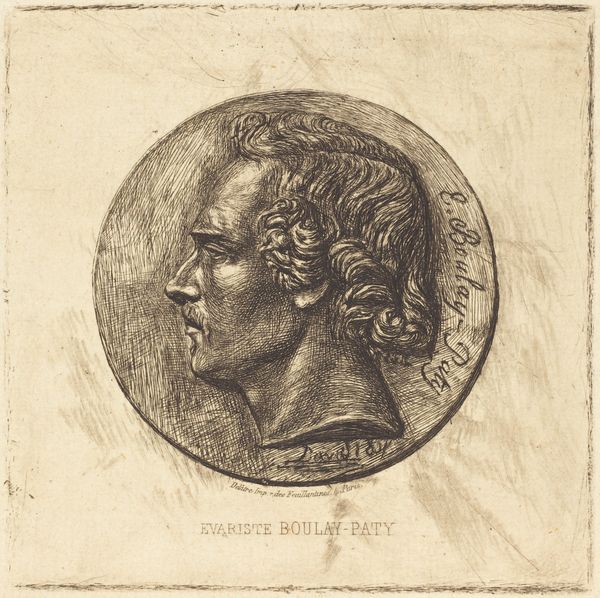 Charles Meryon made this print of the poet Evariste Boulay-Paty using etching, a printmaking process with a long history. The image begins with a metal plate, likely copper, its surface carefully coated with a waxy, acid-resistant ground. Meryon then used a needle to draw through this ground, exposing the metal beneath. When the plate was immersed in acid, the lines were bitten into the metal, creating grooves. These grooves would hold the ink, transferred to paper under great pressure in a printing press. The resulting print has a distinctive character. Look closely, and you’ll see the subtle variations in the lines, their depth and thickness, which create a rich tonal range. This direct engagement with the material—the plate, the acid, the paper—gives the portrait a unique immediacy. It’s a reminder that even in the age of mechanical reproduction, the hand of the artist, and the inherent qualities of the materials, still play a crucial role. Meryon wasn't just making an image; he was engaging in a deeply physical and skillful process.