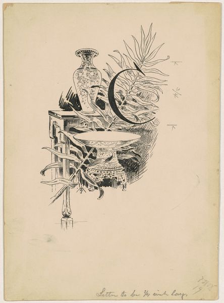 James Henry Moser made this ink drawing, titled "Electrotype Reproductions," probably around the turn of the 20th century. It is a sketch of a man standing on a set of steps next to a giant letter 'E'. The title is telling. Electrotyping was an innovative printing technique. It allowed for the mass production of images and text, driving down costs and increasing accessibility. The process involved creating a mold of the original artwork, then using electrochemistry to deposit a thin layer of metal, often copper, onto the mold. This metal shell was then backed with a stronger metal, and used as a printing plate. The drawing itself is a study in contrasts. On one hand, the figure is rendered with a high level of detail, while the surrounding is more sketched and loose. Moser’s drawing provides a glimpse into the world of industrial image-making, where art and commerce increasingly intertwined. It makes you think about labor, efficiency, and the democratization of visual culture in the modern age.