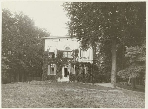 This sepia-toned photograph, likely taken by Delizy in Le Moulleau near Arcachon, presents a view of villas amidst a dense forest. The photograph's composition immediately draws the eye to the central villa, its structure sharply defined against the softer backdrop of trees. The architectural details are carefully rendered, emphasizing the geometry and balance of the building’s facade. This attention to form and line creates a sense of order contrasting with the natural, organic shapes of the surrounding foliage. Delizy’s choice of sepia tones adds a layer of nostalgic distance, muting the colors and softening the edges, which enhances the photograph’s formal qualities. The interplay of light and shadow further accentuates the structures, giving depth and volume to both the villas and the trees. The strategic arrangement of the villas and the forest, highlights a tension between the man-made and the natural. This tension reflects broader cultural ideas about humanity's place within the natural world. By focusing on these formal elements, Delizy prompts us to consider the underlying structures that shape our perception and understanding of both art and life.