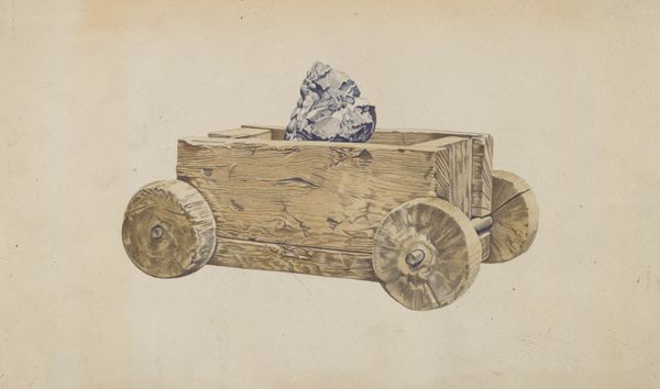 Editor: This is "Ambulance Carriage Toy," a watercolor and drawing piece by Chris Makrenos, created around 1939. It gives off a slightly melancholic feel, doesn’t it? How do you interpret this work, especially considering its date? Curator: Given its creation on the eve of World War II, this isn’t just a toy; it's a symbol ripe for deconstruction. Who would this toy ambulance serve? We must consider how its imagery intersects with ideas about social duty and the looming anxieties of a world at war. It provokes questions about childhood innocence versus the militarization of society. Editor: So, you're seeing beyond a simple depiction of a toy? Curator: Absolutely. Notice the muted color palette and the somewhat crude drawing style. Does this contribute to that melancholic atmosphere you sensed? Editor: Yes, the colors aren't bright and cheerful like I’d expect for a toy. The image, for me, is not just an aesthetic depiction, but a deeper meditation on historical anxieties. Curator: Precisely. And considering the caricature tag, how might we interpret its function as more than just descriptive? Who benefits from such representation and its implications regarding society's treatment of emergency services or ideas of sickness and health at that particular moment? Editor: That definitely sheds new light on it. I was initially drawn to the aesthetic, but now I see so many more layers. Curator: Right! Engaging with historical and cultural contexts unlocks the artwork’s full potential and its challenge to our contemporary moment. It serves as a reminder of ongoing questions of agency, access, and representation, always demanding a critical, informed reading.