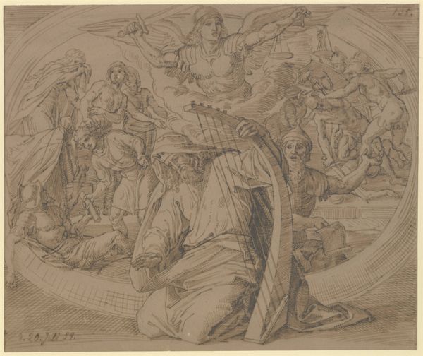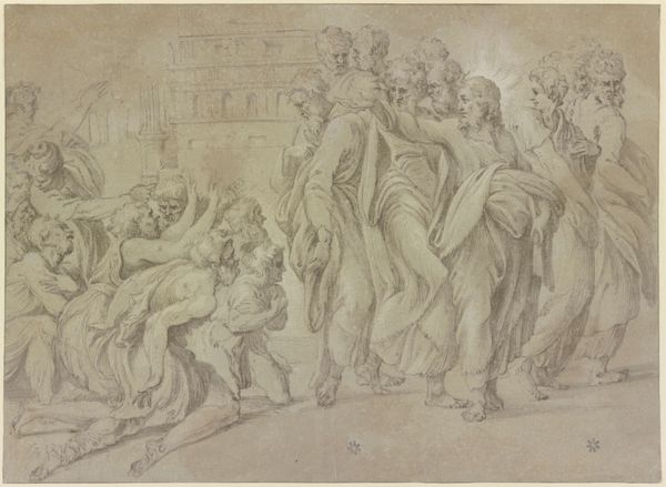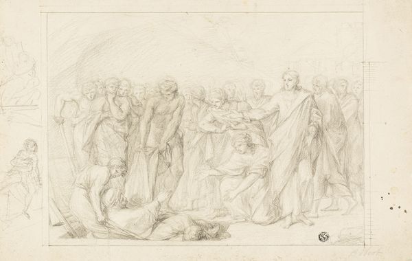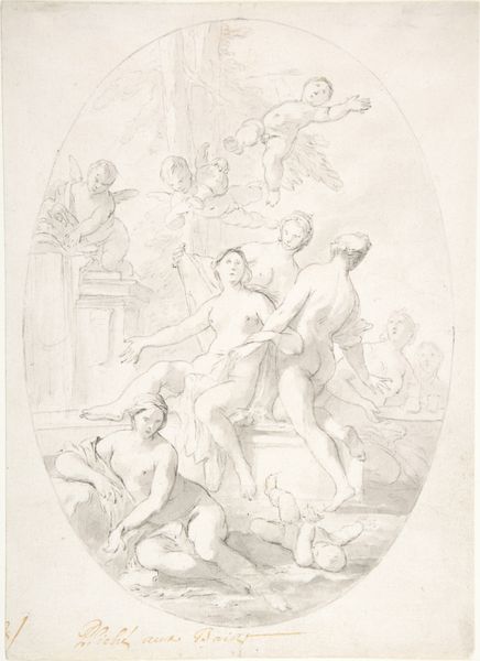 Théodore Chassériau made this drawing of "The Nursing of Jupiter" using graphite and gray wash, likely in France sometime in the mid-19th century. The image presents a classical subject, but it's filtered through the lens of its own time. We can see that Chassériau borrows from classical mythology – the infant Jupiter being hidden away and nursed to protect him from his father. But he's also clearly influenced by the artistic conventions of his era, particularly Romanticism's interest in emotion and drama. This was a period of immense social change, and there was a real hunger for art that spoke to those shifts. The artwork’s visual vocabulary and cultural references are fascinating. To truly understand art like this, we need to look at sources like exhibition reviews, artist biographies, and the writings of contemporary critics. What we can see is that the artist made something that speaks to both his own time and to timeless human concerns.