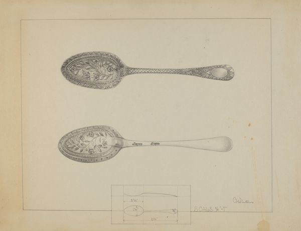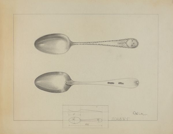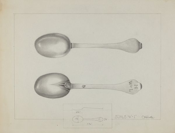 Charlotte Winter's rendering of a "Silver Spoon" presents two studies in graphite on paper, their stark realism grounded by an architectonic frame. These are accompanied by what seems to be a technical diagram in the lower left, as if the artist were an engineer drafting a schematic. Note how Winter employs tonal variation to create a sense of depth and volume, subtly articulating the spoon’s curved surfaces. Light and shadow define its form, and the precision of line work creates a sense of material presence. The twin representation of the object offers multiple perspectives, inviting us to consider the spoon not merely as utensil but as an object of scrutiny. The structuralist reading invites one to consider the cultural codes embedded within this everyday object. The spoon becomes a sign, loaded with cultural meanings of wealth and status. The cool detachment of Winter’s style, combined with her focus on a functional object, challenges conventional hierarchies of value. This allows us to question established meanings of value and representation.