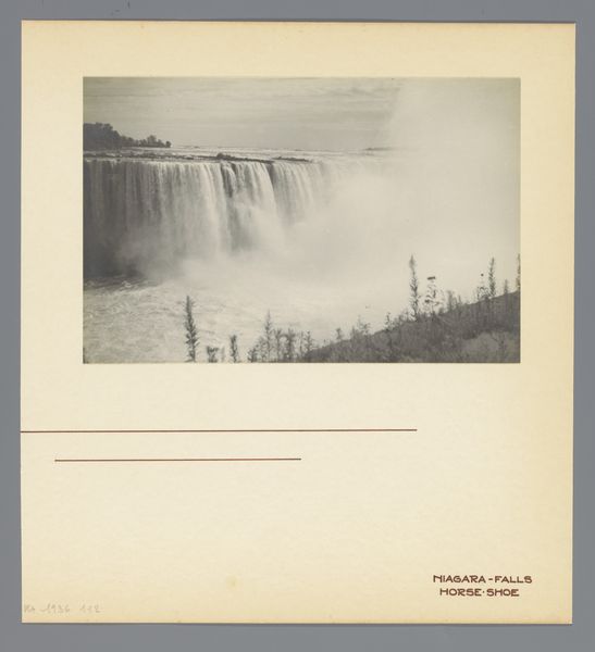 Editor: So this photograph, “Niagara Falls, Verenigde Staten/Canada,” was taken by Wouter Cool in 1936. It's a black and white image that captures a specific angle of the falls before it plunges. There is a building, perhaps for utilities, alongside it. It evokes a sense of both awe and… almost of industrial encroachment. What catches your eye when you look at it? Curator: The stark contrast between the raw, untamed power of the Falls and the calculated geometry of the dam infrastructure… it creates a powerful symbolic tension, doesn’t it? This duality speaks volumes about humanity's relationship with nature in the 1930s. The dam and the associated structures whisper a story of control and resource management, very telling of the anxieties of that decade. Look at how the lines of the structure almost seem to want to dominate the scene. What do you think the photographer might be trying to convey? Editor: I wonder if they're pointing out a kind of hubris? That need to contain something so naturally immense? Curator: Precisely. Water has always been symbolic of the unconscious, of fluidity, and life, whilst the man-made architecture imposes an attempt at rationality. Is this progress or oppression? Which force, water or stone, will prevail? Even the photograph's monochrome palette contributes, flattening the scene into something timeless, highlighting underlying structures. And consider its placement amongst "photojournalism". What memory is it trying to preserve? Editor: That's a really interesting way to look at it. I hadn't considered the photograph itself as a symbol in that larger context. Thank you! Curator: My pleasure! Thinking about it this way reminds us that the symbolic meaning isn't something fixed, it evolves and changes over time, in dialogue with our own cultural experiences.
