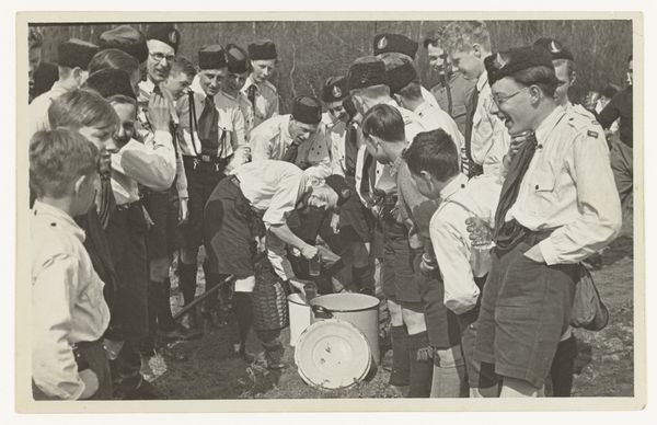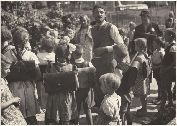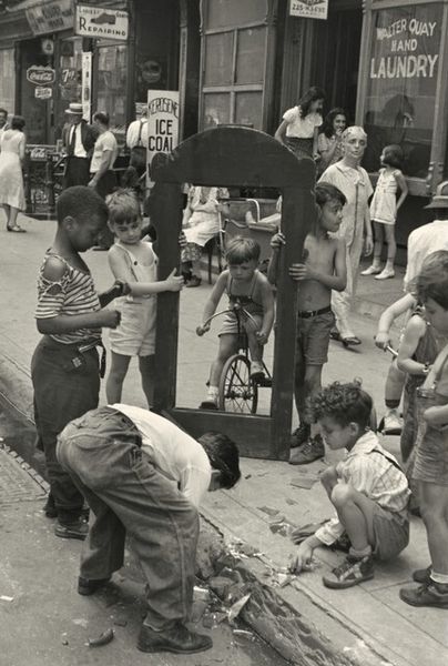 Robert Frank captured this image of an actor with a wheelbarrow surrounded by children while filming "Steinbruch." The wheelbarrow, an ancient symbol of labor, takes center stage. The joyous expressions and chaotic movement of the children evoke a sense of vitality. Yet, the wheelbarrow itself carries the weight of human toil. The wheelbarrow is a recurring motif across centuries of art—from rustic scenes of peasant life to allegorical representations of human burden. This image echoes similar motifs in works like Millet's "The Gleaners," where the depiction of labor is laden with social and moral significance. Consider the psychological power of this photograph, the carefree joy of youth juxtaposed with the actor’s figure in the foreground. The wheelbarrow persists, reinvented across epochs, as an enduring symbol of labor and the cycle of human experience, a testament to the enduring power of symbols in our collective consciousness.