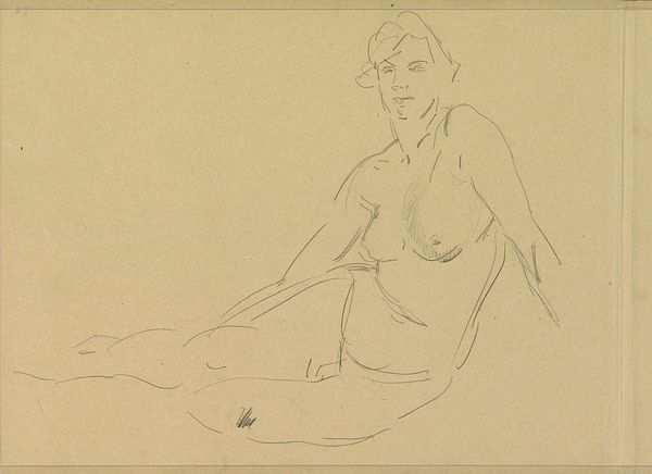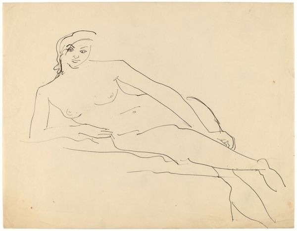 Editor: This watercolor by Rudy Burckhardt, "Nude on an Empire Sofa," from around the 1970s, is so intriguing. The woman’s gaze is direct and the chaise lounge almost feels too grand for the loose, free style. How do you interpret this work, especially thinking about its place in art history? Curator: It's interesting to consider this work through the lens of accessibility and representation. The Empire sofa, a symbol of wealth and power, is juxtaposed with the unidealized nude figure. How might this pairing comment on the traditional power dynamics within art, and who gets to be depicted, and how? Editor: I hadn’t thought about that specifically. The sort of casual depiction definitely counters the traditional 'ideal' nude of earlier eras. Curator: Exactly! Burckhardt, known for his street photography, often focused on the everyday. Do you see how this painting challenges the elitism often associated with both nudes in art and luxurious settings? Perhaps he is democratizing the subject, removing it from the exclusive realm of idealized beauty. Editor: I see what you mean. Placing the figure in a more ‘ordinary’ context diminishes the traditional… drama, I guess. Curator: Precisely. It raises questions about the ownership of imagery and the political act of simply portraying a nude figure in a non-conventional way. It pushes the boundary of what is considered acceptable or beautiful within the socio-political art landscape. Editor: So, by presenting something so "ordinary" against the expected backdrop, he creates this subtle but effective statement? Curator: Precisely. This work underscores the evolving social narrative surrounding representation and beauty within art, challenging conventional ideals and broadening the scope of what is considered worthy of portrayal. Editor: That's a very insightful way to see it! I'll definitely consider this when viewing other similar pieces in the future. Curator: It highlights how much historical and social context can impact the perception and importance of a work, and how art can function as both reflection and driver for cultural change.