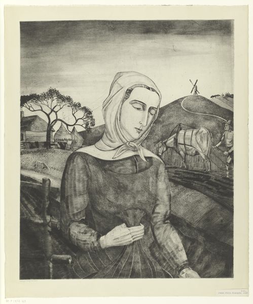 Manuel Rodríguez Lozano created 'Rebozo Blanco,' an oil on canvas, showing a woman in traditional Mexican clothing. The rebozo, a shawl, is a powerful cultural symbol in Mexico, representing womanhood, tradition, and national identity. Rodríguez Lozano worked to redefine Mexican art, rejecting overt political narratives, in favor of exploring universal themes, psychology, and the inner life. The woman's gaze and melancholic expression might hint at a sense of isolation or quiet contemplation, in contrast to the dynamic and extroverted imagery of contemporary muralists. Historical archives, personal letters, and critical writings can help us to better understand the artist’s intentions, and to explore the artwork's reception within the specific social and institutional context of Mexican Modernism. These kinds of research resources are crucial for understanding how art reflects and shapes cultural values.