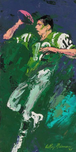 LeRoy Neiman made this dynamic painting of Arnold Palmer with vibrant strokes of oil paint. It’s a work that almost entirely abandons traditional artistic techniques. Neiman wasn't interested in the precise rendering of a scene, but rather in capturing the energy of it. His bold, expressive brushwork and vivid color palette transform a simple action into a powerful, almost abstract composition. The thick application of paint gives the surface a tactile quality, as if we can feel the force of Palmer's swing. Neiman was a painter interested in capturing the culture of his day, be that the sports or entertainment industry. He engaged with the skilled traditions of fine art but applied them to subjects that might once have been considered outside the realm of high art. The work involved in this painting is significant: Neiman’s gestural marks suggest the speed and power of the athlete while capturing a sense of the social spectacle around professional golf in the 1970s. By focusing on the materials and the making, we can see how Neiman challenged traditional distinctions between fine art and popular culture.