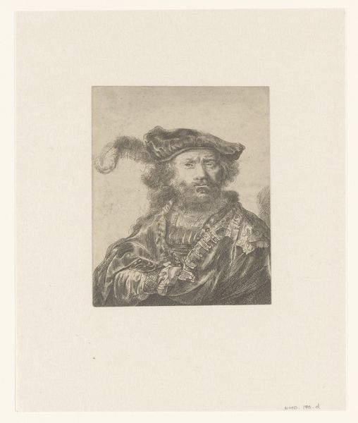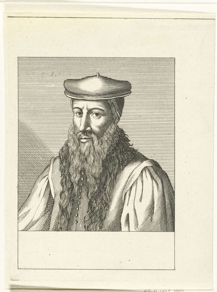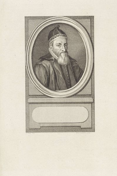 Curator: So here we have Nicolas de Larmessin's 1682 engraving, "Portret van Gerardus Mercator," housed at the Rijksmuseum. Editor: It's incredible how much detail Larmessin was able to achieve with engraving! There’s such a solemn feel to the piece. I'm curious, what elements jump out to you? Curator: Immediately, I'm struck by how Mercator is framed, literally, within this circular border, but also figuratively. He's positioned as this pillar of knowledge during a time of intense colonial expansion, and the maps he created were, undeniably, tools for that expansion. We have to consider the ethical implications of Mercator's work alongside its scientific contributions. Editor: That’s a really interesting point. I was mainly focused on the skill of the artist, but thinking about the maps as tools changes my perspective. Does the choice of printmaking as a medium play into this? Curator: Absolutely. Prints made the maps – and therefore the power they represented – accessible to a wider audience, further enabling exploration and, yes, exploitation. Think about how this image might have been circulated, influencing perceptions of the world and reinforcing particular power structures. Consider how access was extremely limited based on class and gender. Editor: So it's not just about celebrating Mercator's achievements, but critically examining the context in which those achievements were used? Curator: Exactly. It prompts us to question whose perspectives are centered and whose are marginalized. It really encapsulates the phrase "knowledge is power," and forces one to examine who holds and controls it. Editor: Wow, I never considered how deeply intertwined this portrait could be with the social and political climate of the time. Thanks for shedding light on that! Curator: It's crucial to remember that art doesn't exist in a vacuum. Engaging with the historical and social contexts allows us to have more meaningful dialogue about the legacy and impacts of these works.