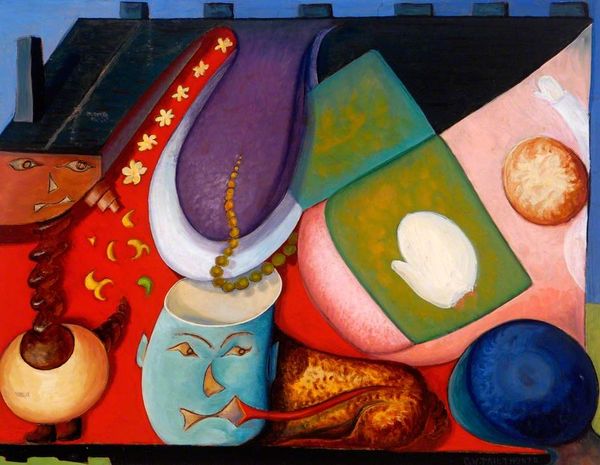 Editor: We’re looking at “Krishnalila I,” a painting by Jahar Dasgupta. While the date is not available, the style is suggestive of fantasy art executed using what seems to be traditional painting techniques. The blue figures set against that darker ground feel otherworldly. How should we approach interpreting this? Curator: Focusing on the material aspects is crucial. The artist's choice to represent figures using a non-naturalistic pigment demands scrutiny. It begs the question, what cultural resources were available that allow him to choose blue pigment, and does that cultural context then lend meaning to the figures being portrayed as blue? Consider the commercial accessibility and use of ultramarine, lapis lazuli or even synthetic pigments in India, and how that impacts our interpretation. Editor: So the availability of blue pigment informs our understanding? It shifts the focus from pure artistic expression to the material conditions enabling that expression. Curator: Precisely. And the very act of painting. This wasn’t, I’m guessing, digital painting. Look at the labor invested – the time to apply layers, blend colors, build up the composition. Think of this against a backdrop of post-colonial Indian art; are they adopting western oil painting or re-interpreting materials found more locally? Is it craft, fine art, or a deliberate hybridity? Editor: I see. So, understanding the historical and geographical context, especially concerning the availability and trade of materials, gives us deeper insights into its meaning. Curator: It decenters the “genius” artist and re-centers the network of material production and distribution that the artist engaged in. It changes how we understand artistic creativity, no? Editor: Absolutely. Considering art this way creates more questions, and reveals a deeper richness through material, making and labor. Curator: Indeed.