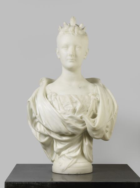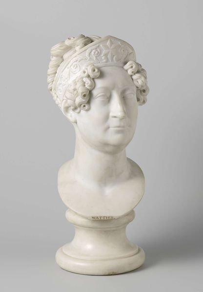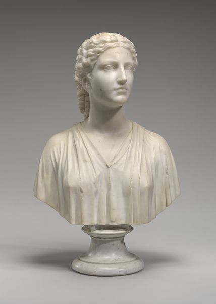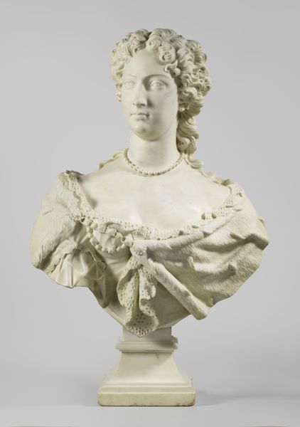 Curator: Immediately striking! There’s a quiet, contained grace to it, isn’t there? Editor: It is, although “grace” might mask a deliberate statement of wealth and position. We're looking at "Bust of a Young Woman" by Simone Bianco, created sometime between 1512 and 1553, a fine example of Italian Renaissance portraiture currently residing at the SMK, Statens Museum for Kunst. It is carved from marble, of course. Curator: The selection of marble alone communicates status. How extraordinary it is—transforming this dense material into the impression of delicate flesh and elaborately styled hair. The crafting is impressive. Were these busts made for private citizens or mostly nobility? Editor: While commissioned by both, the key element lies in what the artwork performs. This sculpture serves not only as a personal memento, it presents this young woman—who, without accompanying documents, unfortunately remains nameless—to her contemporaries and, frankly, to posterity. A timeless figure embodying ideals of feminine beauty and virtue, but presented in cool marble. Curator: It speaks to a specific method of production in that period. Each tool, each choice of marble grade, all represent economic investment and skillful labor intended to elicit respect for her person, family connections, or some other sign of her high standing. I'm also thinking about who had access to these kinds of sculptures. Editor: Absolutely, and consider the sculptor’s labor too. While we appreciate Bianco's mastery, his skill becomes another facet that mirrors the social framework of this time. Think about whose stories and likenesses were considered important enough to immortalize. We should question that inherent bias. Curator: The polish alone indicates the high skill of the makers. How the medium itself serves not just as a means of conveying a likeness, but also a register of labor, skill and resources of the people. This marble—and its manipulation—tell their own tales of extraction and refinement. Editor: True. It compels us to consider how our perceptions of beauty are constructed, and which stories continue to be privileged. It also challenges viewers, like us, to keep an awareness on broader implications. Curator: Indeed, it all emphasizes how inextricably bound art is to broader economic and labor systems. Editor: Agreed. Viewing artwork critically isn’t just about appreciating a pretty object, but understanding its role in society and what voices still need amplifying.