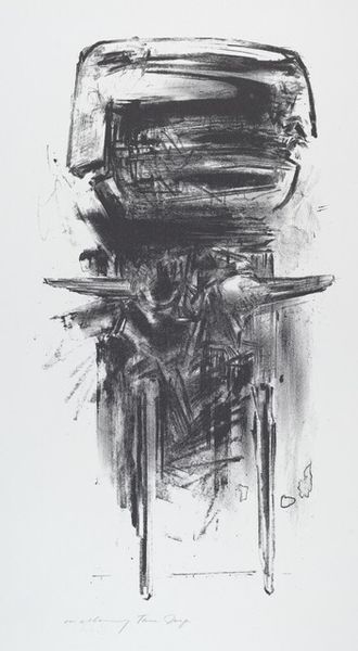 Editor: We’re looking at "Old town Ozalj," an ink drawing by Alfred Freddy Krupa, created in 2006. It's monochrome and almost entirely abstract. The ink strokes are bold, giving it an improvisational feel. I am intrigued by how he conveys structure without being explicitly representational. What's your read on this piece? Curator: Considering this piece through a historical lens, the artist's choice of subject, an "Old Town," speaks volumes. What's being monumentalized here, and for whom? Notice the energetic lines versus more subdued architectural renderings, seemingly competing in the composition. This highlights a tension: is Krupa memorializing an objective historical landmark, or is he capturing a feeling? Editor: That's interesting. The title suggests a specific place, Ozalj, but the execution is far from a straightforward depiction. The location informs but doesn’t restrict the visual. Do you think the monochrome choice serves a similar function? Curator: Precisely. Monochrome can often invoke the past. Early photography, old documents... Krupa consciously makes use of that artistic association. Further, the contrast allows formal and gestural elements of painting equal footing. It forces the viewer to grapple with questions: who decides what aspects of a town or culture are “important,” which should be literally highlighted or figuratively washed away? How do the answers impact the artwork? Editor: So, beyond just a landscape, it's prompting questions about memory, place, and maybe even power structures. It's like he's using the visual to dissect how we perceive history. Curator: Precisely. Considering the artist’s cultural and geo-political positioning may help explain the image's affect. We must interrogate the choices present: from the brushstrokes to the chosen "subject", Krupa seems less interested in accurately archiving Ozalj and more intent on making an impactful, enduring socio-historical statement. Editor: Wow, I never would have considered all of that. It gives me so much to think about regarding abstraction and its relationship to reality. Thanks for pointing that out! Curator: My pleasure. It is always a good challenge to confront one’s understanding of art.