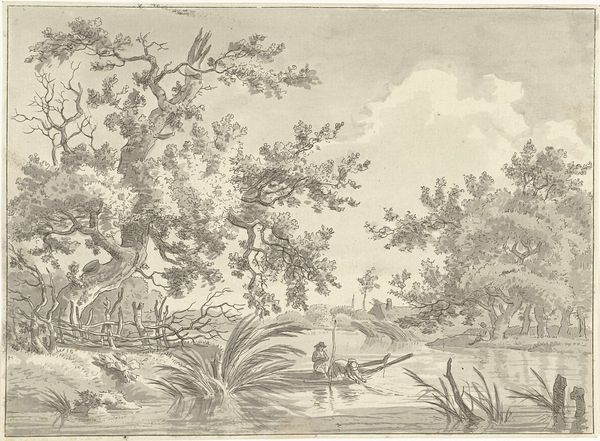 Jan van Goyen made this drawing of trees and bushes along a stream with pen and brown ink in the mid-17th century. A reed pen would have been cut and shaped by hand, and the ink mixed from a recipe. There are various ways to make brown ink but it was often produced using iron salts, tannin, and a binder like gum arabic. The drawing is defined by the fluidity of the ink, manipulated by the artist's hand. Note how Van Goyen allows the ink's inherent qualities to create depth and texture. See how the varying pressures and angles of the pen create different line weights, giving life to the scene. The speed and accuracy of the drawing suggests the artist completed the work outdoors, en plein air. Van Goyen would have likely produced many drawings like this, to be sold in the booming art market of the Dutch Golden Age. This drawing demonstrates the skill involved in traditional art practices, and challenges our assumptions about the divide between craft and fine art.