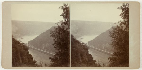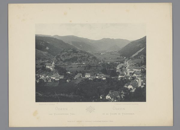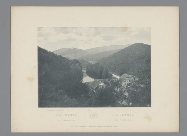 Charles Bernhoeft made this photograph, "Gezicht op Lutzelbourg," capturing a scenic view with a focus on form and texture. At first glance, notice how the composition divides into distinct layers—the rugged foreground, the meandering river and settlement midground, and the distant hills. Bernhoeft plays with tonal contrasts, creating depth through the varying shades of gray. The large rock in the foreground isn't merely a detail; its mass and texture anchor the composition, leading the eye into the more delicate details of the landscape beyond. The town itself is neatly structured, almost as if arranged for the camera, with the river acting as a compositional guide. Bernhoeft's work highlights a tension between the natural and the constructed. The photograph not only captures a real place but also interprets it through choices in framing and focus, creating a dialogue about how we perceive and represent the world.