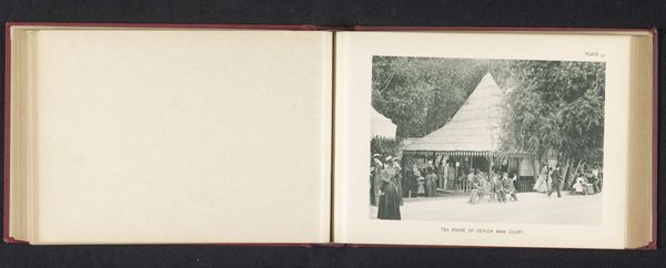 Curator: This is an albumen print from 1893 by Charles Dudley Arnold, capturing the Japanese Tea House at the World's Columbian Exposition in Chicago. It offers a window into how Japan presented itself on the world stage during the height of Japonisme. Editor: Well, hello there, visual time capsule! It feels both incredibly detailed and oddly dreamlike, like a scene glimpsed through a smoky mirror. There’s a stillness about it. Like the world's holding its breath. Curator: Precisely. These world fairs were carefully curated stages for nations to display their cultural prowess and technological advancements. The Japanese Tea House served as an emblem of cultural diplomacy. Editor: I imagine it as a portal, really. This serene little pavilion smack-dab in the middle of all that…brass and bustle. I can almost smell the cedar and green tea just looking at this picture! It feels… separate. Curator: That sense of "separateness" you feel gets at the heart of the period's fascination with the "exotic" East. These curated environments fueled both genuine interest and a fair amount of cultural appropriation. The Exposition played a crucial role in introducing and solidifying certain images of Japan within American culture. Editor: You're right. The soft focus does romanticize it. Almost blurs out any messy realities. I see how it plays into this almost mythological, perfect vision. Like a painted screen. Beautiful…but, y’know, selective. Curator: The soft focus, a product of the albumen printing process, was quite common for landscape photography during that period. Think about how the display reinforced—or challenged—the American public's preconceptions about Japanese identity. Editor: Food for thought, truly. So, it is an old photograph of a place built to sell an image. Layer upon layer. It really does change how you look at it, the details you suddenly start to see, the little people inside… like they're characters in some silent story. Curator: Absolutely. It's a testament to how a single image can encapsulate a complex interplay of cultural exchange, imperial ambition, and artistic representation. Editor: A pretty good reason to ponder old photos for a bit, I'd say. I like that this is an open book. Nice touch. Curator: Agreed, and there's something to be said about discovering history, layer by layer, image by image.