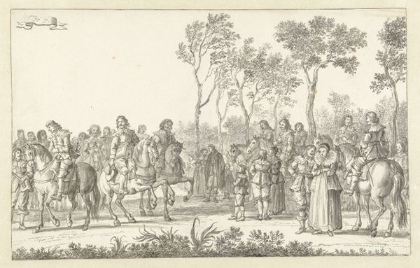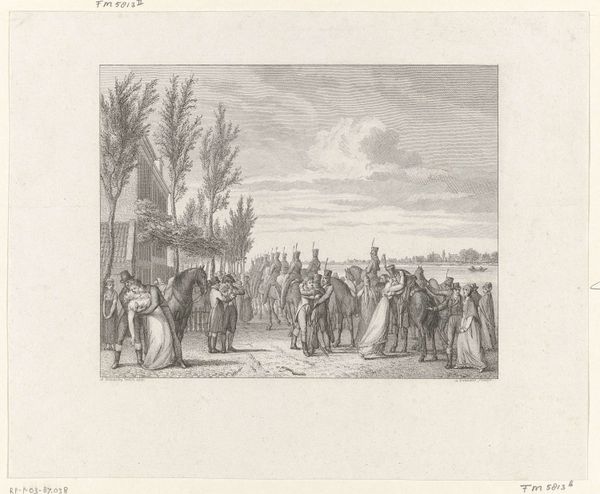 This engraving by Reinier Vinkeles captures the symbolic handover of Amsterdam's keys to Emperor Napoleon in 1811. The gesture of surrendering keys has deep roots, reaching back to ancient times, signifying submission and the transfer of power. Consider the medieval city gate, often adorned with symbols of authority. The keys to such a gate were not merely practical; they represented the city's very essence, its autonomy, and its fate. Notice the triumphal arch on the right, an architectural motif borrowed from ancient Rome. Such arches were erected to honor military victories and emperors, visually linking Napoleon to the grandeur and legitimacy of the Roman Empire. This carefully staged event, immortalized in print, attempts to harness the emotional power of historical symbols. Yet, the act also hints at underlying tensions, a forced embrace of a new order, captured in a silent, emotionally charged tableau.