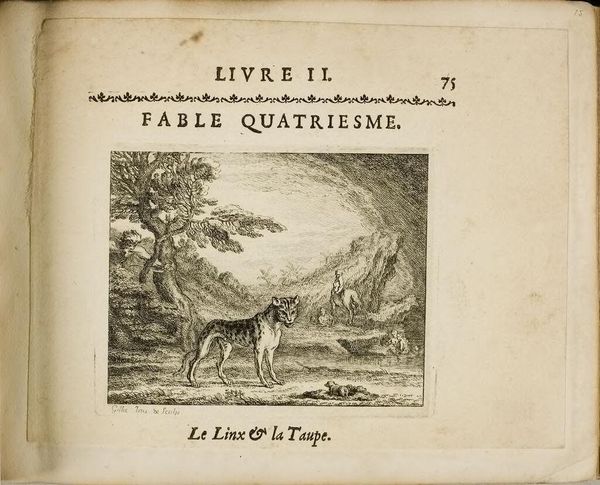 Curator: This is Claude Gillot's "The Hunter and the Elephants," a small etching. The action seems so frenetic. Editor: The crosshatching really emphasizes the weight of the elephants and the chaos of the hunt. It’s all about the process of mark-making here. Curator: Right. This scene likely draws on the common early modern trope of the exoticized "other" and speaks to the colonial gaze. Editor: And the use of etching – readily reproducible – speaks to the commodification of this exotic imagery. Curator: Seeing it through the lens of postcolonial theory really forces us to question the narrative being presented. Editor: Thinking about Gillot's workshop practice, we can see how such a small, repeatable image could circulate these ideas widely. Curator: Indeed, it pushes us to consider the politics of representation in 18th-century France. Editor: A simple print, yet dense with layers of meaning and making.