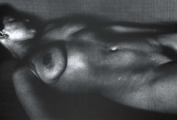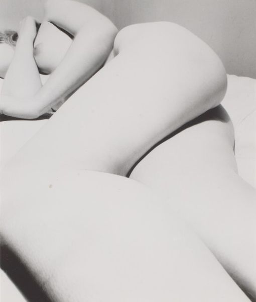 Editor: This is "Wall and Unmade Bed, Washington, D.C." a C-print photograph by Nancy Rexroth, taken in 1972. It’s... hazy, almost dreamlike, but also unsettling with its claustrophobic perspective. What catches your eye when you look at it? Curator: Immediately, I’m drawn to the liminal space – that sense of transition between the domestic, represented by the bed, and something more undefined, suggested by the wall. It’s blurred, yes, almost as if obscuring something…Do you see that horizon line, just barely there? What do you make of that? Editor: It makes me wonder what’s outside, or beyond. Like the bed is a safe space, and the world is out there. Curator: Precisely. The unmade bed carries potent psychological weight. Traditionally, the bed symbolizes rest, intimacy, but here it suggests vulnerability, perhaps even a disruption. It is a very common archetype in post-war art: think Tracey Emin's "My Bed", or Felix Gonzalez-Torres piles of candy or photographs. Those all ask us questions about loss and sexuality by subverting our ideas of what “domestic bliss” can be. Does the muted palette contribute, do you think? Editor: Definitely, it's not a cheerful picture. It feels faded and distant, almost like a memory. The colors remind me of old photographs or faded textiles. Curator: You are absolutely right! It speaks of lost memories or secrets that time and memory have distorted. And what about the decision to use C-print as a printing process? Editor: Good point! C-prints don't necessarily give an impression of timelessness! This actually feels quite modern. Curator: Rexroth is masterfully playing on themes related to mortality and intimacy through the universal symbol of "home." Do you see this too? Editor: I hadn't thought of it that way initially, but that totally makes sense. I see how she has taken that symbol, home, and made it uncanny. I find this very compelling, thanks! Curator: It is indeed a powerful comment about how our inner and outer worlds intertwine and change with time. Thank you for making such astute observations!