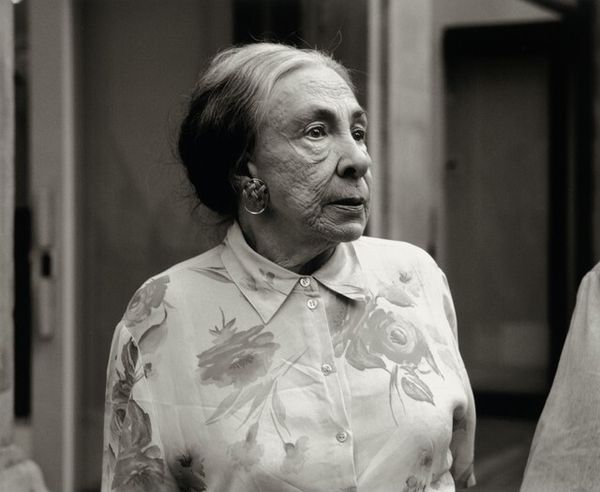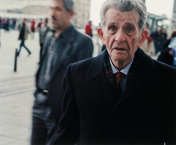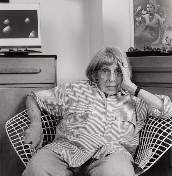 Editor: Here we have Oliver Mark’s 2006 photograph, “Hans Neuenfels.” It's a monochrome portrait, and I’m immediately drawn to the contrast between the sharp focus on the subject's face and the softer, almost blurred background. It feels very classic, almost like a study in textures. What elements stand out to you most in this image? Curator: For me, the power lies in understanding the photograph's production. Consider the labor involved: Mark, as the photographer, mediating his vision through the camera, chemicals, and paper. What kind of labour went into creating the sculpture behind Neuenfels? The material of these sculptural elements too plays a role; we assume them to be cold stone that contrasts the apparent vulnerability of the man in the foreground. How does Mark leverage the materiality of photography itself—the darkroom process, the choice of paper—to create this mood? Editor: So you're thinking about the materials and processes involved, rather than the immediate aesthetic impact? Curator: Exactly. What statement is being made by photographing Neuenfels alongside a statue? How might these combined visual objects affect the viewer's interpretation? This photo also challenges conventional notions of portraiture. It isn’t just about capturing a likeness but presenting an image steeped in material choices and embedded with questions about art and labour. Editor: That’s interesting, I hadn’t considered how the choice of black and white film influences the experience, making it feel so rooted in the past. Curator: Precisely. Think about the accessibility of photography, its shift from elite practice to widespread consumption. Is Mark making a comment on that transformation through the conscious deployment of traditional techniques? This returns us to considering the artist's material means as critical to the image's overall effect. Editor: I see your point. By focusing on the means of production, we gain a deeper appreciation for the photograph’s constructed nature and its place within art history. Curator: Right. It reveals the web of labour, materiality, and even consumption that constitutes the artwork, moving beyond simple aesthetics. Editor: I’ve definitely got a lot to think about! Thanks for shifting my perspective.