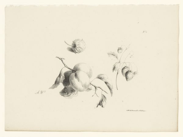 Editor: So, this drawing, “Druiven, slak en appels,” or “Grapes, snail and apples,” made sometime between 1820 and 1833, is a pencil drawing. It’s simple, almost scientific in its approach. I'm curious, how do you interpret this work beyond just a study of natural objects? Curator: It's interesting you pick up on that almost scientific quality. This wasn't just about documenting nature; it reflects a changing world. Consider the context: The Enlightenment had emphasized reason and observation, influencing art's role in understanding the world. How might that connection between scientific observation and the emerging industrial society affect art production and the perception of nature? Editor: That’s a great question! It pushes me to see beyond the surface, because I am thinking how it relates to today and a world that feels mass-produced and separated from natural objects. Curator: Precisely! Realism was emerging as a potent force in art. Think of how the style itself can act as a political statement. How does choosing to depict everyday objects realistically challenge existing artistic conventions or social norms? Consider who had access to such imagery. Was this drawing intended for a broad audience, or was it geared toward a more exclusive group with the privilege to engage with art? Editor: I hadn't considered the class dimension before. Thinking about it now, even a seemingly simple drawing reflects broader issues of access and representation. Curator: Exactly! This image operates within a larger framework of power and privilege, and interrogating it allows us to develop a richer understanding of its significance. How might a feminist reading of this image shift our understanding of its context? What alternative narratives or perspectives can we explore? Editor: This has completely shifted my perspective! What I saw as just a simple rendering is connected to power, observation, and politics! Curator: It’s these layers of interpretation that make art so compelling and reveal a more comprehensive view of how we communicate today.