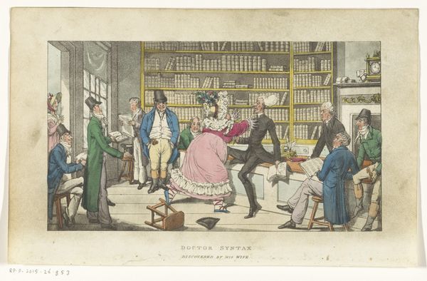This small print, titled "Two Children in a Bookshop," was made by an anonymous artist using engraving with added watercolor. Looking closely, you can see how the engraved lines create the structure of the image, defining forms like the books on the shelves and the folds in the children's clothing. Engraving is an intensive process, demanding real skill. The artist would have used a tool called a burin to carve lines directly into a metal plate. The plate is then inked, and the surface wiped clean, leaving ink only in the engraved lines. When paper is pressed against the plate, the image transfers. The application of watercolor added further detail and richness to the final print. Prints like this were often made in multiples, sold to a wide audience. They reflect the rise of consumer culture. By focusing on these production methods and the social context in which this print was made and consumed, we can gain a deeper understanding of its significance.