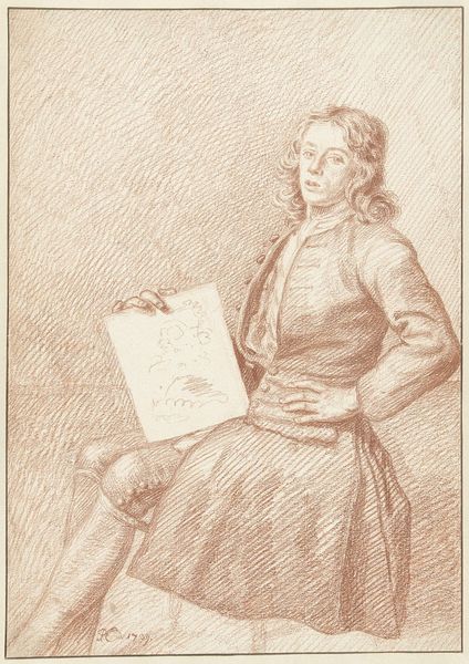Curator: This delicate engraving, "Johann Winckelmann," possibly dating between 1764 and 1780, presents a thoughtful depiction of the famous art historian. Angelica Kauffmann is credited with the original drawing, which was then reproduced as a print. What’s your initial reaction to this portrait? Editor: Immediately, I’m struck by Winckelmann’s gaze, seemingly directed away from the viewer, suggesting perhaps a focus on intellectual pursuits rather than engagement with the external world. He looks so distant and caught up in something that remains undisclosed to us. It prompts reflection on the social pressures impacting male scholars of the time, where internalized oppression or other limitations, even under the auspices of 'art', remain hidden, or in this case averted from a head-on point of view. Curator: The medium, engraving, is important here. Think about the labour involved – the meticulous carving into a metal plate, the multiple impressions that could then circulate, making Winckelmann's image widely accessible. It was a way of disseminating knowledge and celebrating intellectual figures, essentially a manufacturing process for the circulation of ideas and celebrity. The texture alone created from the engraver’s mark making generates tone and depth that would require multiple steps or hand drawings if created at full-scale. Editor: Indeed, that accessibility is key. How often are the contributions of figures, particularly outside the traditional artistic sphere, properly recognized? Winckelmann's presence here, preserved through Kauffmann's artistic skill and then reproduced and spread using this print-making technique, really underscores the historical valuation of certain men of thought during this period of neoclassicism while so many others have gone unseen or undocumented in broader histories. What choices were behind the labor and material decisions that favored this particular subject in comparison to a wider representation? Curator: I agree. The distribution via print fostered a community of thinkers, but we must recognize the systems that elevated figures such as Winckelmann above the anonymous artisans who likely contributed to the creation of antiquities and cultural knowledge upon which figures such as Winckelmann predicated their reputation. Editor: It encourages us to question those power structures of the time. Who was valued, who was seen and who was ultimately deemed disposable to progress at the time and to really interrogate it all. Curator: Absolutely, and in examining those complex narratives, we gain a far richer understanding of the art, the artist, and society itself. Editor: Right. A good reminder to maintain healthy scrutiny on our established figures!