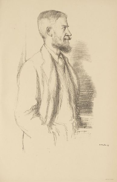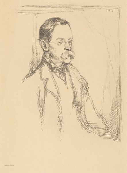 Editor: Here we have "Portret van Charles Goeneutte," a pencil drawing by Norbert Goeneutte, created before 1888. It's a delicate portrait; I’m struck by how modern it feels, even though it's over a century old. What's your perspective on this work? Curator: What strikes me is the depiction of male identity. We're presented with a bourgeois gentleman, an artist, and considering this was the era of rapid industrialisation, societal expectations regarding masculinity were quite rigid. But the sketch-like quality, the unfinished feel, softens that rigid persona. Editor: Do you think that choice was intentional, to soften that expected masculinity? Curator: Absolutely. Look at the way Goeneutte captures his brother. Not posed, not stoic, but with a sense of vulnerability. How does that disrupt, or perhaps inform, traditional notions of power associated with the male gaze within portraiture of the time? This artwork becomes part of a bigger conversation, a more radical view. Editor: That's interesting! I was mainly focusing on the artistic style and the technique but seeing how this reflects gender and power makes it so much more. Curator: Precisely. It also subtly challenges prevailing social norms, creating space for dialogues on identity. I'd prompt you to consider the gaze of the sitter. Where does that take you in considering intersectionality in portraiture? Editor: It certainly changes how I appreciate not only this piece but all portraiture going forward. Thank you. Curator: And thank you. Art becomes powerful when we unpack its connections to societal narratives, when we invite it into conversations on equality and representation.