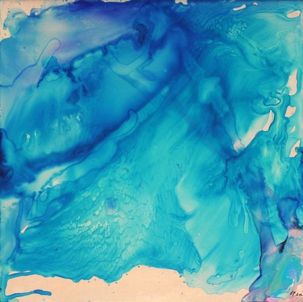 Curator: Looking at Kazuaki Tanahashi's "Ocean Within," crafted in 2011 using acrylic paint, what's the initial feeling or idea that comes to you? Editor: Whoa, the color is just mesmerizing, isn't it? That intense, almost indigo blue against the stark white... It feels like peering into a hidden, turbulent depth. There's a power and serenity somehow mixed in there. Like a whale song in paint. Curator: It's interesting you say that, because Tanahashi’s work often intersects with Buddhist philosophy and a deep concern for ecological issues. Abstract Expressionism, particularly landscape-inspired works, gives artists space to visualize interior and exterior concepts such as vastness. In that context, how do you view his portrayal? Editor: The 'interior' element is spot on! Because even though the title screams 'ocean', there's this swirling, inward motion in the brushstrokes. It's like the painting isn’t just about depicting an ocean, it's about the feeling of being submerged, overwhelmed maybe, by something much bigger than yourself. Sort of existentially drenched, you know? Curator: It resonates with feminist theory around the embodiment and the ecological self, and challenges to anthropocentrism by expanding beyond humanistic perspectives. By the swirling brushstrokes and gradations of blue and purple shades in "Ocean Within," could we see this as an allegory of humanity and the vastness of environmental entanglement? Editor: Absolutely, it can be. I see those darker, almost bruised hues at the base, too. The painting speaks of both immense beauty and fragility, a bit like that feeling when you find plastic waste while surfing...It is this collision that is profoundly present here. Curator: Right, it's the duality of nature – both a life-sustaining force and subject to violent disruption, often through the Anthropocene's effects. Tanahashi's choice of impasto with visible textures underscores nature’s raw, untamed essence. What does this choice of materiality tell you about the ocean and our place in it? Editor: The impasto gives it that visceral feel—like the foam is almost literally bursting from the canvas. For me, it pulls the ocean closer, lets you feel its presence physically as well as visually, underlining the unavoidable and raw connection that you were referencing earlier. It's almost challenging, isn't it? Daring you to touch it and dive in…even though you know it can be dangerous. Curator: It seems to engage ecological responsibility. Any last thoughts, reflecting on Tanahashi's artistic statement with the context we’ve explored? Editor: What remains with me is the paradox: this quiet painting speaks volumes about the roaring urgency of environmental issues. Thanks, Kazuaki, for the not-so-gentle nudge! Curator: Agreed, its abstract rendering allows for an intimacy of feeling, placing onus and space on each of us for our place and our planet.