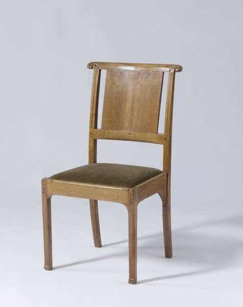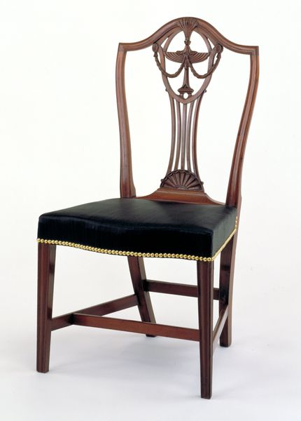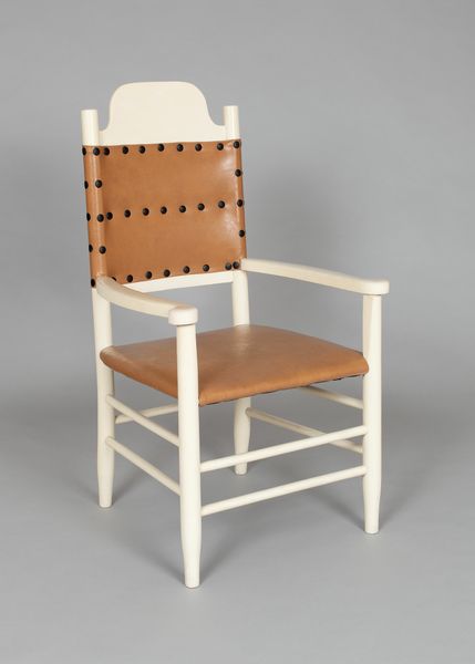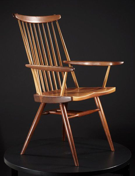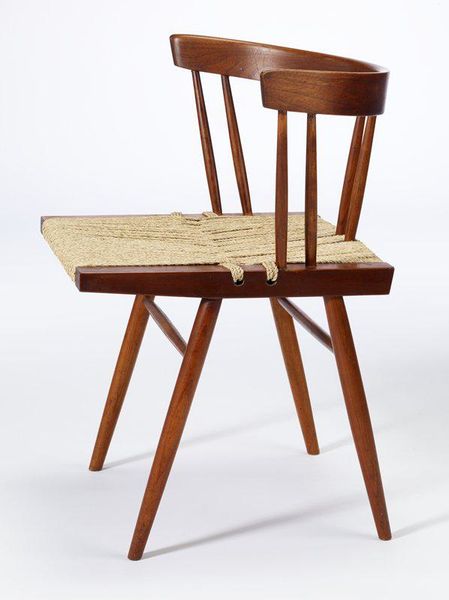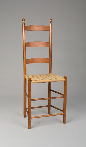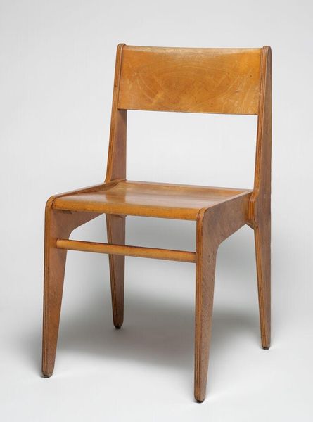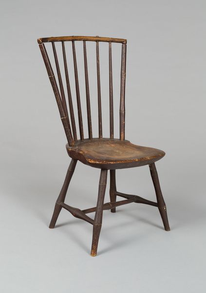 Editor: Let's turn our attention to "New Chair," a wooden chair created in 1955 by George Nakashima. I find it strangely comforting; the warm wood tones and slender, almost delicate spindles evoke a sense of simple elegance. How do you interpret this work? Curator: Ah, Nakashima. He believed that wood had a soul. It whispers stories, if you just listen. This isn't just a chair; it's a meditation on form and function. It has whispers of the Arts and Crafts movement with a very zen Modernism to it. Do you notice how the seat itself seems to organically flow? It is hand shaped for a real bottom. I think its like his love letter to natural materials. Do you see any other Arts & Crafts traits here? Editor: Now that you mention it, the focus on handcrafted quality definitely aligns with Arts and Crafts ideals, along with the overall simplicity. But it also seems more streamlined than many pieces from that era. Is that where the modernism comes in? Curator: Exactly! He melded those two beautifully! Nakashima seemed to imbue his pieces with such a respect, reverence even, for the tree from which the wood came. And I feel that, don’t you? It invites a pause, a quiet moment of reflection. I wonder what story it would tell, if we could just get it to talk? Editor: It's amazing how something so functional can evoke such contemplation! Thanks, that shifted my perception considerably. Curator: Mine too, actually! Every time I gaze upon this piece, I swear I hear new echoes of the forest. Until the next revelation!