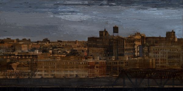 This panoramic view of Brooklyn was painted by Patrick Pietropoli using traditional oil paints on canvas. Looking closely, notice how the earth-toned colours, applied with thick impasto, give the cityscape a weighty, almost geological feel. The application of paint evokes the heavy labour involved in the construction of the city itself, with layers of brushstrokes mirroring the accumulation of brick and stone. The panoramic format stretches the scene, emphasizing the relentless urban sprawl. This technique, reminiscent of nineteenth-century landscape painting, invites us to consider the social implications of urban development. Pietropoli’s painterly approach reminds us that even the most seemingly straightforward depictions are the product of skilled handwork. Ultimately, this view challenges us to think about the relationship between artistic labor and the labor that builds our world.