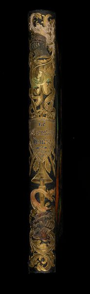 Curator: Let’s take a look at this exquisite inrō titled "Case (Inrō) with Design of Curtains of State and a Woman's Fan." Created sometime between 1771 and 1899, the piece is currently housed at the Metropolitan Museum of Art. Editor: It's incredibly striking! The contrasting gold designs on that rich, dark lacquer… it almost shimmers. The scale too - you realize how small it actually is as a functional case. Curator: Precisely! These inrō were essentially status symbols. This one is meticulously crafted, using mixed media and carving on wood, along with ink. The design shows opened curtains and a lady's fan—both signifiers of the inner world of women from Japan. Editor: Thinking about that small scale… the labor involved must have been substantial. Each layer, each carefully applied fleck of gold. I wonder about the workshops where these objects were produced. Who were the craftspeople? Were they specialized laborers focusing solely on decorative lacquerwork like this? And the elite class who would purchase and parade them as possessions? Curator: An excellent point! Consider how objects like these played a role in the social display of wealth and power. Owning something so intricately made proclaimed your refined taste, of course, but also indicated a certain access to luxury— and likely alluded to their owner's association with classical themes drawn from Japanese literature and theatre. Editor: The positioning of the fan especially intrigues me. Does it suggest anything about social conduct? Who might be watching whom? And how might this reflect public life back in the Edo Period? I almost want to read the scenes depicted! Curator: Absolutely. This particular example reminds us how artworks can also become potent visual records, holding specific narratives. Editor: This little object certainly contains a complex story—about labor, value, and cultural norms that shaped even everyday life! Curator: Indeed! I appreciate you highlighting the multifaceted dimensions of such a compact artifact, revealing a great complexity about both creation and consumption of the decorative arts.