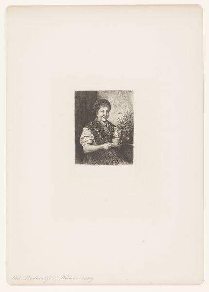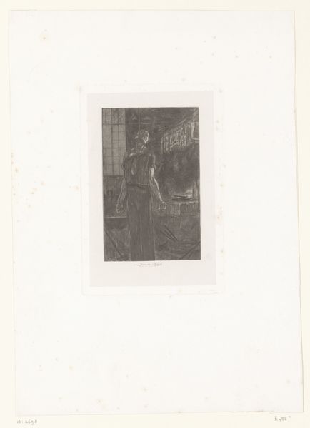 This is Adolf Carel Nunnink's "Jager", a work of indeterminate date currently held at the Rijksmuseum. Executed on paper, the artwork's dominant impression resides in its meticulous rendering of form through intricate line work. The composition is carefully structured with a central figure framed by an arched window. Notice how the textures, from the soft fabrics to the rigid stone, are described using tonal variation. This focus on form and texture transforms the depicted scene into an exploration of structure and materiality. The subdued palette and deliberate use of chiaroscuro—the contrast between light and dark—evoke a sense of introspection. This piece engages with the philosophical notions of representation and perception, questioning how we construct meaning from visual stimuli. Ultimately, the success of "Jager" lies not just in its aesthetic appeal but in its ability to encourage ongoing dialogue and reinterpretation through its structural and formal choices.
