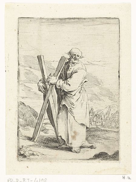 Andries Both created this print, Matteüs, using the etching technique. This process involves coating a metal plate with a waxy, acid-resistant substance, then scratching an image into the coating. The plate is then bathed in acid, which bites into the exposed metal, creating incised lines. The lines in this print are not laboriously engraved one by one but made through a chemical process which enabled the artist to produce many copies of the artwork, with the help of a printing press. This was important to the wide distribution of images and ideas in the 17th century. What I find fascinating here is the way the artist has used the etching technique to create such a striking image. The relatively simple materials of metal, wax, and acid, combined with the skill of the artist, result in a delicate, detailed work. The etching technique allowed for the relatively quick and easy production of multiple copies, making art more accessible. We can appreciate the historical and social significance, as well as the aesthetic qualities, of this print.