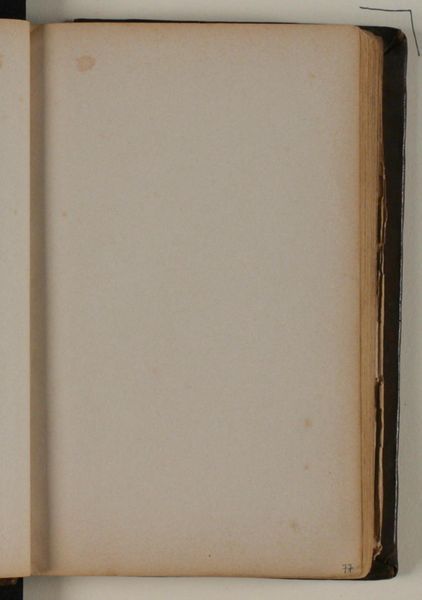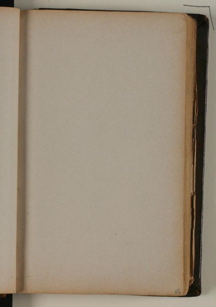Editor: Here we have *Blank* by Niels Larsen Stevns, likely from between 1864 and 1941, created with drawing on paper. The overwhelming impression I get is…potential. An open book is just filled with possibilities. What strikes you when you see this? Curator: It’s interesting you say ‘potential.’ As a historian, my first instinct is to see absence and its societal implications. Consider the Danish context in the late 19th and early 20th centuries: artistic movements grappled with national identity and shifting cultural values. This "blankness," might that not also speak to a lack, to censorship, or even unacknowledged social narratives? Editor: I hadn't thought about it that way at all. The idea of censorship is intriguing, although this feels more internal somehow? Maybe a hesitancy to start? Curator: Perhaps. But think about how public and private spheres were evolving. An artist might experience subtle pressures – expectations about what subjects are ‘appropriate’ for art. It doesn't need to be overt state control to influence content. The choice to present “nothing” can be a powerful commentary. Are there visible page numbers there at the corner? What do you read from that number in terms of what *could* be drawn? Editor: It’s very faint, but looks like 54? Does it suggest there was art earlier in the book that was removed or…that there were more to come that never got made? Either possibility makes me slightly sad! Curator: Precisely. We’re imposing our interpretation today, while Larsen Stevns likely intended a commentary relevant for his period. What seems like 'potential' now may well have been resistance or a lament for stories untold during the time. Editor: Wow, it is fascinating to consider those historical implications of absence. Thank you. Curator: It is these layers of meanings that really make historical interpretation worthwhile. It reminds us how deeply entangled art and society remain, even in apparent emptiness.