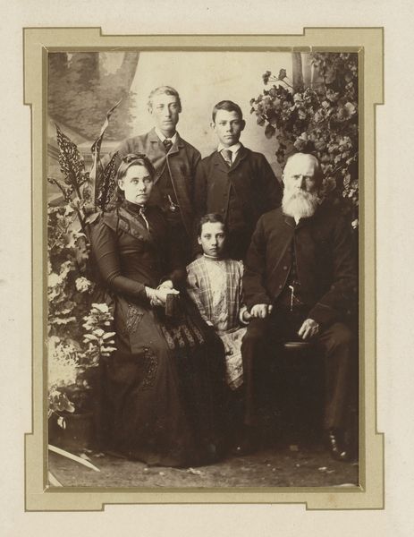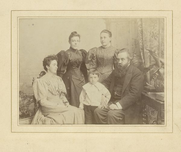 This photographic print portraying a family was made by Bernardus Bruining in the late 19th century. Photography transformed portraiture, making it accessible to a broader public, beyond the wealthy elite who could afford painted likenesses. The sepia tone you see results from the developing process, where silver particles react to light on the coated paper. Note the stillness of the figures; longer exposure times meant subjects had to remain motionless. The very act of creating such images influenced social dynamics, marking a shift in how families presented themselves. Photography democratized image-making, but it was still work. The photographer needed technical skill and specialized equipment. The development of photography as a practice parallels the rise of industrial manufacturing; from specialized labor to an increased focus on distribution and consumption. Considering this, we see how materials and process intertwine with social and economic contexts. Photography, once a novelty, became deeply embedded in everyday life.