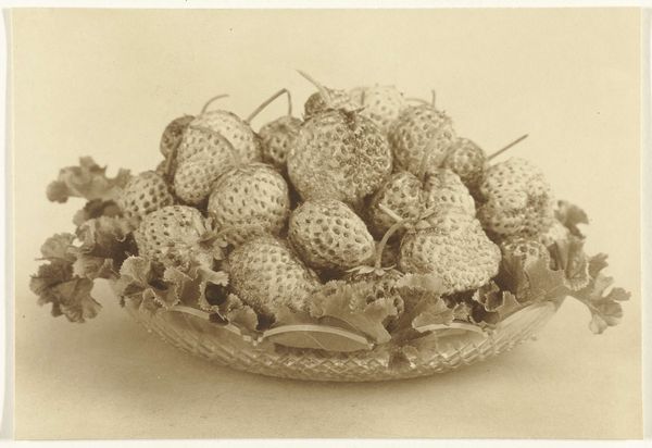 Editor: Here we have "Apples," a photograph taken around 1920 by Richard Tepe, housed in the Rijksmuseum. The monochrome palette and the peeling of the fruit create an interesting still life, almost unsettling in its starkness. What do you see in this piece? Curator: This photograph resonates with broader social and political contexts of its time, specifically exploring the role of food and sustenance during and after the First World War. What narratives emerge when you view these peeled apples not just as objects, but as representations of vulnerability and forced transformation? Editor: Vulnerability? Forced transformation? Tell me more. Curator: Well, consider the context. After the war, scarcity was rampant. To me, these peeled apples symbolize a sort of… unburdening. But it also evokes loss and a raw exposure. The peeling itself becomes an act loaded with meaning – necessity perhaps, but also a stripping away, a removal of protection. Doesn’t this monochrome style, coupled with such common produce, push this discussion on how common items may reveal social stratification or change of custom during social trauma? Editor: That’s a very different reading than I initially had. I hadn’t considered the post-war implications at all. I guess the realism style adds some nuance too, focusing attention on details you'd overlook at first glance. Curator: Precisely! And isn't photography, particularly at this time, deeply intertwined with ideas of documentation and truth? So the way Tepe frames such everyday objects invites us to interrogate notions of simplicity and bareness. To consider it stripped bare as in people were materially and mentally stripped bare because of the events of war. Editor: I see what you mean. It definitely adds layers of complexity to something seemingly simple. Curator: Absolutely. Considering the era, this shifts how we see ordinary objects as carrying resonant social and personal meanings of post-war times. Editor: Thank you, this gave me a lot to think about, how ordinary objects are tied to human experience and sociopolitical context.