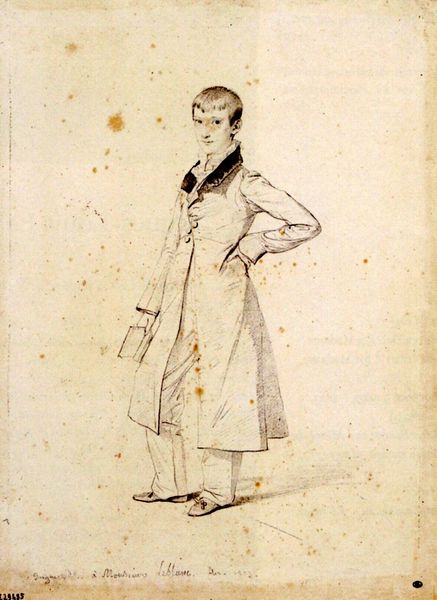Editor: So, here we have a portrait by Jean-Auguste-Dominique Ingres, titled "Jean François Antoine Forest." It's a pencil drawing, and honestly, it feels incredibly poised, but also a little… distant? What strikes you about this portrait? Curator: It's interesting you pick up on that sense of distance. Ingres, even in these preliminary drawings, was keenly aware of how portraits functioned within the social sphere. Consider the sitter, likely a man of some social standing. The crisp lines of his coat, the almost performative grip on what looks like a rolled document… it's a careful construction of an identity meant for public consumption. How do you think the rise of portraiture democratized or perhaps complicated class dynamics? Editor: I hadn't thought about the role of portraiture that way. So it's not just about capturing a likeness, it's about constructing a specific social image? The hat to the side makes you wonder, too – does it further highlight a calculated persona? Curator: Precisely. In Ingres' time, and even before, the very act of commissioning a portrait was a statement. This wasn't simply about remembrance; it was about participating in a visual dialogue that reinforced power structures. Now, think about how museums function: by choosing what is put on display and who gets recognition. Do you think the image in its public showing carries these same power dynamics with it now, or are we able to, through our readings, transform that initial social implication? Editor: That's a fascinating point! Placing this image within a museum setting definitely changes the context. By dissecting the social codes embedded in the image, maybe we can critically examine those historical power structures rather than simply reifying them. Thanks for expanding my understanding! Curator: And thank you. Analyzing Ingres through this lens reminds us of how images, especially portraits, actively participate in shaping historical and social narratives, which institutions like museums still affect to this day.