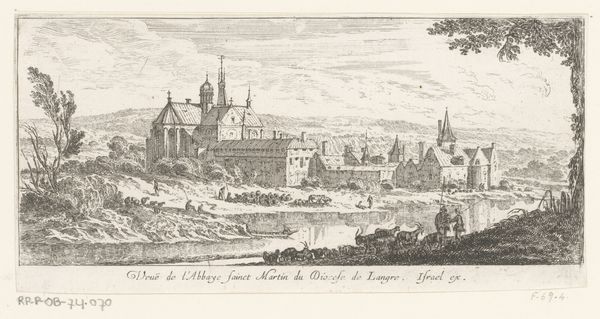 This print, "View of the Marais where Charles the Bold was killed," was made by Israel Silvestre using etching techniques. Look closely and you can see the fine lines created by the etching needle as it cuts through the metal plate. Etching allows for incredible detail, as seen in the landscape and figures. The crispness of line suggests a very deliberate, controlled process; Silvestre was no doubt a master of his medium. Consider how the printmaking process itself adds a layer of meaning. Prints like this were relatively easy to reproduce, and served as a means of disseminating information and perspectives. The making of this image speaks to the broader social role of art in circulating narratives about power and historical events.