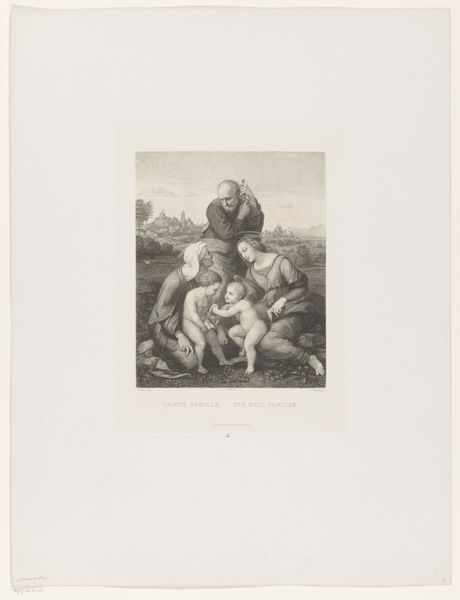 Editor: Here we have Julien-Léopold Boilly’s "Bathing Venus with Putti," from 1853. It’s a print, a drawing in pencil really, and it gives off this wonderfully serene, almost dreamlike vibe, doesn't it? What jumps out at you? Curator: Dreamlike, yes! It reminds me of those hazy summer afternoons when everything feels soft around the edges. Look at Venus, so self-contained and at peace amidst all these cherubic rascals. It feels like glimpsing a private moment, a goddess caught off-guard, letting down her ethereal hair. You almost wonder if she realizes we are looking... What about the light here? Does it evoke something in you? Editor: Definitely! The soft pencil work really enhances that sense of intimacy. But I'm also wondering, is this romantic or academic? It’s a classical subject but feels more emotional than statuesque. Curator: Aha, a good question! Perhaps it is straddling both worlds, a yearning for the idealized beauty of antiquity filtered through a 19th-century sensibility. It has this dance between precision and a sort of wistful longing. What if we consider Boilly less interested in perfect anatomical accuracy, and more in the mood the scene evokes? Almost a memory of beauty rather than its concrete depiction. Editor: I hadn't thought of it that way, but it makes sense. It really is like a half-remembered dream, isn’t it? I find myself wondering what Venus is thinking. Curator: Perhaps nothing! Just being. Imagine existing as the embodiment of beauty itself. No need for pondering when you simply *are*. That’s quite a concept! I like that this artist gives her to us unguarded, untroubled. What a delightful discovery.