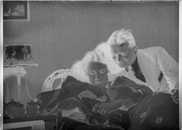 Editor: This photograph by Martin Schweig shows a man adjusting an x-ray machine over a woman. It's striking how clinical and unsettling the image feels. What societal anxieties about science and medicine might it reflect? Curator: Well, consider the rise of medical technology in the 20th century. X-rays, while beneficial, also represented an invisible, potentially dangerous force. How might this image play into public perceptions of medical authority and control during its time? Editor: It makes me think about the power dynamic between doctor and patient. The woman is vulnerable, lying down, while the man is active and in control. Curator: Exactly. And how does the photographic medium itself, with its own history of surveillance and documentation, contribute to that sense of power? Editor: I hadn’t thought about the photography itself adding to that sense of unease. Thanks, that’s really helpful! Curator: My pleasure!