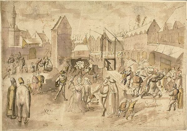 Vasily Perov's "Celebration in the Outskirts of Paris" is rendered in pencil on paper and presents a densely packed scene. The composition guides the viewer's eye through various clusters of figures and structures. The drawing's monochrome palette enhances the starkness of the depiction, with light and shadow used to create depth and texture. Perov masterfully employs line and form to convey the chaos and energy of a Parisian celebration. The dynamic arrangement of tents, figures, and architectural elements creates a sense of visual complexity. By examining the relationships between these elements, the artist invites us to consider the semiotic structures at play. The flags, crowds, and games can be interpreted as signs which encode values, cultural practices, and power structures. The pencil work, with its variations in pressure and direction, adds a layer of tactility, while the drawing's monochrome palette underscores the starkness of its vision. It serves not just as an aesthetic choice, but as a formal element which engages with larger cultural and philosophical discourses.