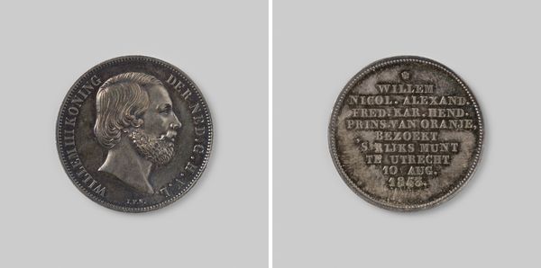 Editor: Here we have Joseph H. Merriam's bronze relief, "Washington's Tomb," made sometime between 1860 and 1865. There's something so classical about it, this profile view in bronze. What do you see in this piece that maybe I'm missing? Curator: It whispers of an era obsessed with legacy, doesn't it? I find myself wondering, who was this piece intended for? Was it a trinket of mourning, a pocket-sized monument to a fallen father-figure? Notice how Washington isn’t just depicted; he’s enshrined, literally framed by his own legend. That smooth, almost idealized profile clashes, doesn't it, with the tumultuous period it was created in, the American Civil War? Editor: Absolutely! It seems to pull from Neoclassicism while the country was actively grappling with anything BUT idealized concepts. Almost feels like intentional blindness? Curator: Precisely! It is almost like trying to preserve the illusion of unity through art. Doesn't it make you wonder about the artist’s intent? Were they yearning for simpler times or perhaps suggesting that Washington's values were the balm the nation desperately needed? Think of this piece, then, not just as a depiction, but as a longing. Editor: A longing etched in bronze! That shifts my perspective entirely. It's less a portrait and more...a prayer? Curator: Beautifully put. Art often reflects our deepest hopes and fears. Editor: Well, I will never look at a bronze relief the same way again! Curator: And that, my friend, is the magic of art.