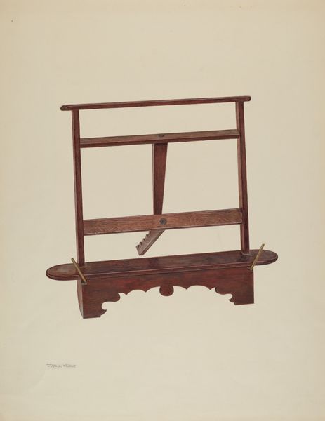 Editor: Here we have "Child's Armchair," a watercolor drawing by Dorothy Johnson from around 1939. The muted tones and focus on a simple object give it a sort of melancholic, intimate feel, almost like a portrait of absence. What do you see in this piece? Curator: It’s funny you mention absence; that's exactly where my mind wanders too. This isn't just an armchair, it's a captured moment—a quiet scene echoing untold stories. I get a sense of someone having actually *sat* in the chair, or *belonging* to the chair, perhaps a child whose presence now exists only in memory. It's like finding a half-finished game or a worn teddy bear; ordinary objects holding extraordinary weight. The medium contributes to the mood, too; watercolor always feels delicate, almost fragile, doesn't it? What is your interpretation of this quiet illustration? Editor: It absolutely does! I wonder, though, if its 'ordinariness' adds to the impact, highlighting how the simplest things become vessels for powerful emotions and memories? And now that I'm thinking about it - in our everyday lives we *belong* to some of our furniture, for example your bed or sofa... maybe that's what made me associate melancholy with the artwork, and why the 'absence' resonated so vividly for me. Curator: Exactly! The real skill of the artist here isn’t in technical prowess alone but, more impressively, Dorothy allows us to imagine our *own* experiences in relation to the empty chair. It is a powerful reflection of how everyday life merges and entwines with memory and feelings. It almost makes me feel nostalgic... Editor: This has completely changed how I see still life paintings! They’re not just pretty arrangements; they’re conversations waiting to happen. Curator: I couldn't agree more, that makes my heart sing, too! It's been an absolute pleasure delving into Dorothy Johnson's work with you. I'll be looking at everyday things in a totally new light from now on, which is *always* the magic of art, isn't it?