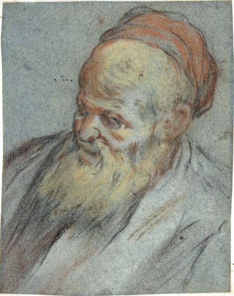 Curator: Here we have what's called "Portrait of a Bearded Man", believed to be a work by Vasily Vereshchagin. The ochre tones and light application give it an unfinished quality, almost as though we've caught the sitter in a fleeting moment. Editor: Fleeting is right. There's an undeniable starkness to it. The composition directs our gaze straight into his shadowed eyes, almost like an accusation. The limited palette only amplifies that intensity. Curator: I agree that Vereshchagin achieves a unique potency here. Knowing his interest in depicting marginalized people and exploring issues of Russian imperialism, this portrait begs us to question who this man might have been within that social hierarchy and the power dynamics Vereshchagin was grappling with. What is withheld and what we as viewers assume are important here. Editor: Indeed, while the historical context adds a layer, the brushwork is fascinating. Observe how Vereshchagin contrasts the sharply defined facial features with the almost blurred, indefinite quality of his robes. It’s a brilliant play of focus and defocus. And also notice the tension between his bright bald head and his shadowy eyes, it conveys that tension, that mystery you described so well. Curator: It makes you consider the complexities of aging, too, doesn't it? The wisdom potentially etched into those features. His beard may speak to religious commitment, a marker of belonging to a particular group in the vast and diverse empire, or even the opposite, defiance. We can also read these portraits in light of the artist's anti-war stance; what toll has conflict had on his physical form? Editor: Perhaps. Yet, despite all this context, I return to the pure formalism: the textural variation created through layering, the expert control of light…these formal decisions create a palpable mood beyond any narrative assumptions we may project. Curator: Absolutely, there are so many paths to understanding Vereshchagin and the people who made up his world. Ultimately it is in seeing those various, sometimes conflicting, angles that we truly come to a richer engagement. Editor: I agree, that's exactly what this painting brings to light: it is not just seeing but *how* we choose to see.