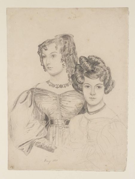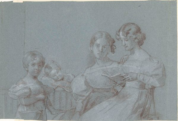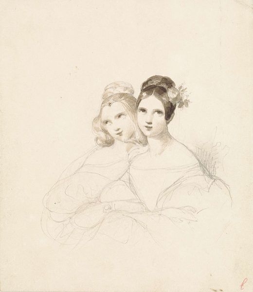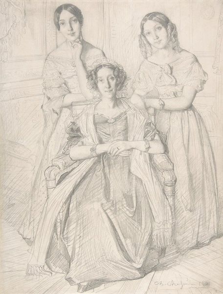 Jean-Auguste-Dominique Ingres rendered this drawing of The Kaunitz Sisters, using graphite to produce a composition with muted tones and delicate lines. The arrangement of the three figures creates a series of visual planes, each defined by subtle shifts in value. The youngest sister sits at the piano in the foreground, with the two older sisters standing behind. Ingres employs a structural clarity that echoes the neoclassical aesthetics of his time. The lines are precise, delineating the contours of the women's faces and dresses. The use of chiaroscuro is minimal, yet effective in creating a sense of depth and volume. This approach to form underscores a semiotic system that values order, reason, and idealized beauty. The composition destabilizes conventional portraiture through its understated elegance, shifting away from bombastic displays of wealth and status. Ultimately, the drawing's power lies in its formal restraint. Ingres’ controlled application of graphite enhances the image's impact, inviting us to reconsider the codes of representation.
