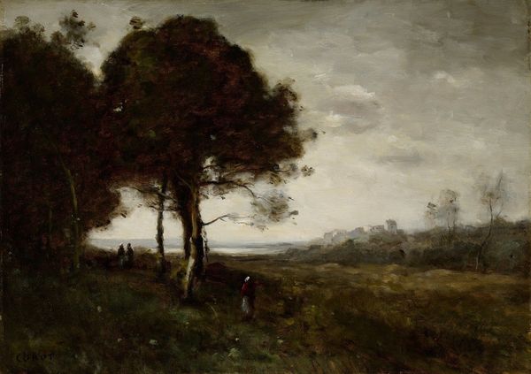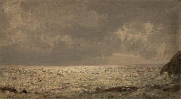 Vilhelm Hammershøi created this landscape, "View of Jægersborg Allé," with oil on canvas, a relatively traditional artistic medium. Hammershøi's choice of materials deeply influences the painting's appearance. The muted palette—primarily grays, browns, and greens—creates a somber, almost melancholic mood. The visible brushstrokes and the slight impasto of the paint contribute to a textured surface, adding depth to the otherwise minimalist composition. Oil paint allowed Hammershøi to build up layers of color, creating subtle variations in tone and luminosity. The way he handled the paint, applying it in thin, even layers, enhances the atmospheric quality of the scene. It is a scene which might appear almost photographic. The location is a relatively affluent suburb. In appreciating Hammershøi's work, it's crucial to consider the materials and methods he employed. This approach challenges traditional art history's separation of fine art from craft, revealing how the process and materiality can imbue a painting with profound social and cultural significance.