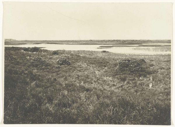 Editor: Paul Strand's "Camargue, France" from 1951, a gelatin-silver print, really strikes me. It’s a study in contrasts, the sharp, modern lines of the bridge against the soft, almost hazy, marshland. The monochromatic palette adds to the serene yet stark feeling. What elements jump out to you, and how do you read them? Curator: It's astute to focus on the dialectic Strand constructs through form. Observe how the strong diagonal of the bridge disrupts the horizontal planes of the landscape. The textures also merit consideration. Notice how Strand exploits the tonal range of the gelatin-silver process. The smooth, reflective water opposes the grainy, almost tactile, vegetation. Do you perceive a visual rhythm emerging from these juxtapositions? Editor: Absolutely, I see that rhythm now, especially the way the linear bridge contrasts with the organic curves of the land. It’s almost a dialogue between the man-made and the natural. But does this tension suggest a deeper commentary? Curator: Commentary, perhaps, but approached through formal relationships. Consider the picture plane as a structured field. The placement of the bridge is not arbitrary; it creates a dynamic tension with the receding space. Further, think of photography's inherent indexicality. While capturing reality, it abstracts through framing and light. In Strand's hands, does realism transcend mere representation to become an arrangement of shape and tone? Editor: That makes so much sense. So, while the photograph captures a specific place, its power lies in how those shapes and tones interact. I hadn’t considered how the act of framing changes the reading so fundamentally. Curator: Precisely. Strand isn't simply documenting; he is composing. By examining these elements closely, one appreciates the artistry of photographic structure. Editor: I'm walking away with a deeper appreciation for the formal elements and how they drive the photograph's meaning. Thanks for showing me new perspectives on this image. Curator: And you, in turn, sharpened my perspective by engaging with the inherent tensions Strand constructs.