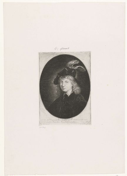 This is William Unger's "Portret van een onbekende jongeman met brede hoed", an engraving held at the Rijksmuseum. Unger created this portrait during a time when the Netherlands was grappling with its identity, seeking to define itself amidst broader European cultural currents. The sitter’s identity remains a mystery, but we can deduce aspects of his social standing through his attire. The broad hat and elaborate lace collar suggest a person of means, deeply entrenched in the fashion norms of his time. The choice to depict an unknown individual raises questions about who gets remembered and celebrated in art history, and about class and social mobility. Unger’s technique creates a sense of intimacy, inviting us to speculate about the sitter’s life. Consider the gaze of this unknown young man. What does it mean to look back at him across the centuries? This piece prompts us to reflect on the fleeting nature of identity and the enduring power of art to preserve and question who we are.